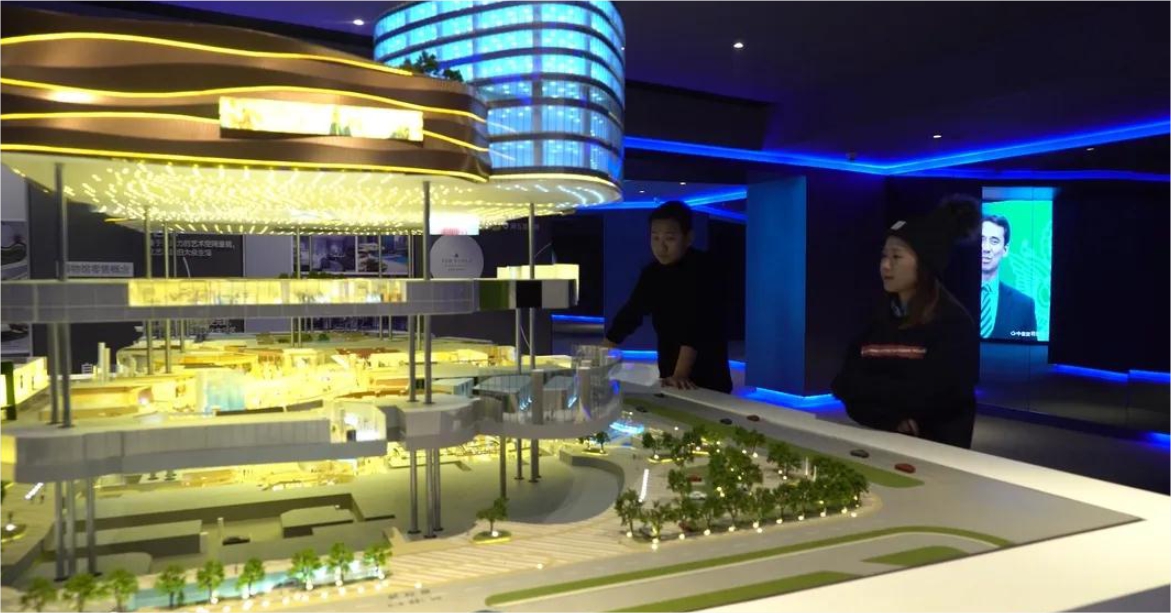 沙盤展示區(qū),以可升降沙盤結(jié)合質(zhì)感光效,演繹理想與現(xiàn)實(shí)的結(jié)合。